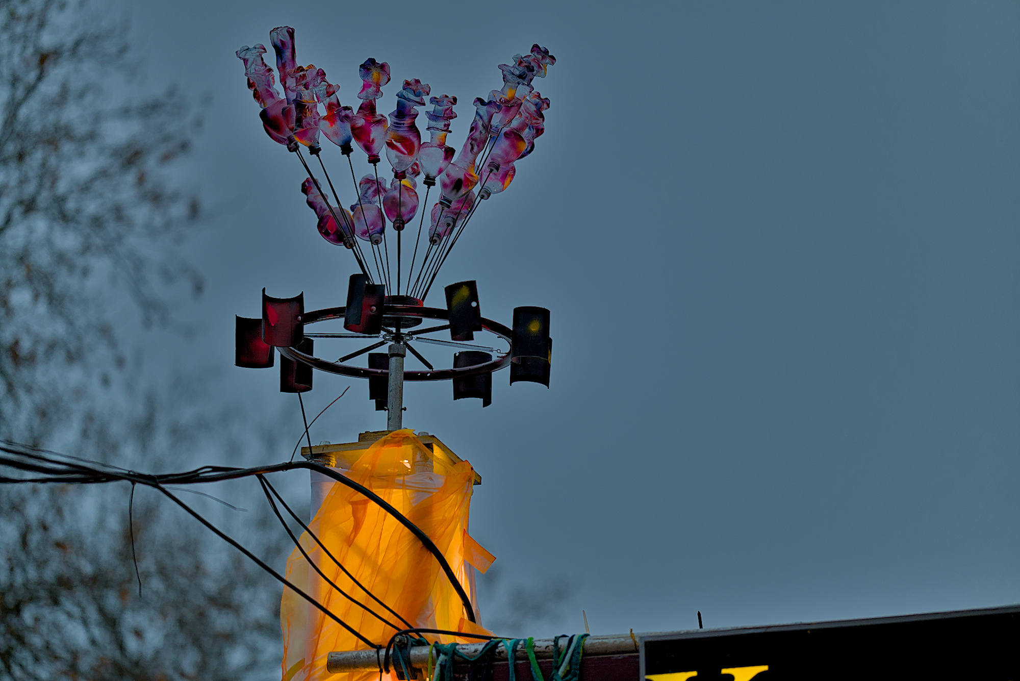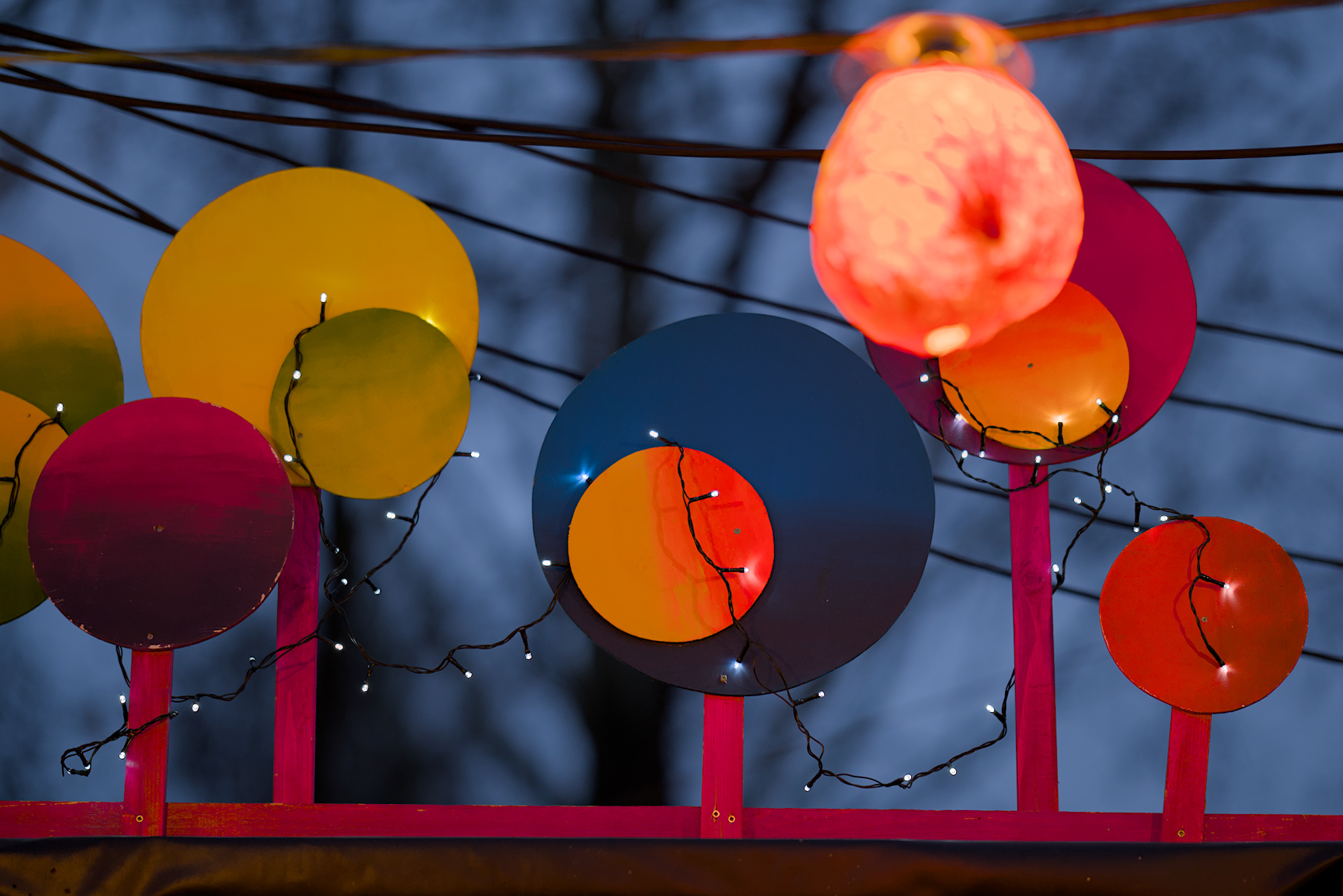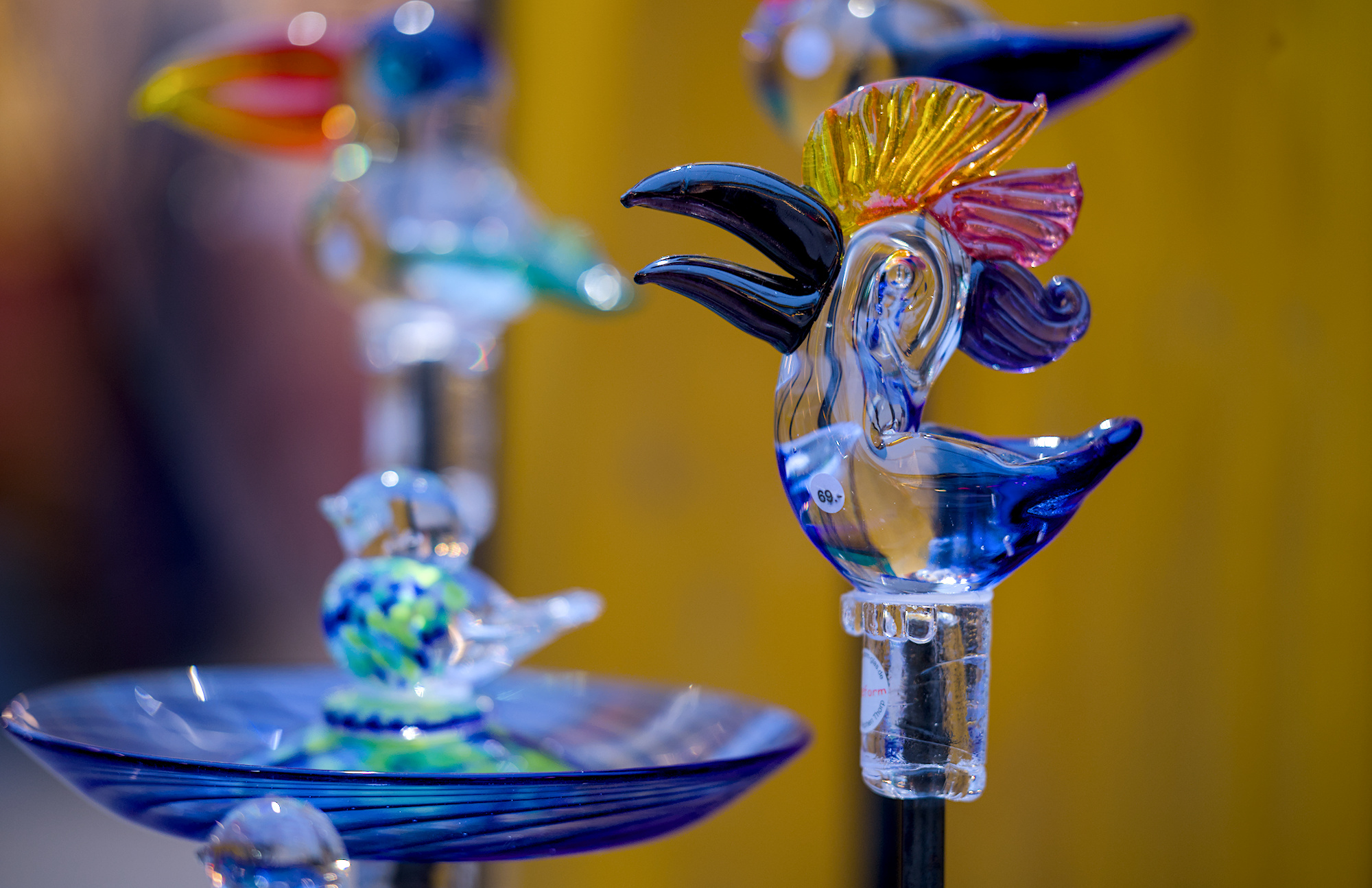 Es stellte sich heraus, dass dieser Markt etwas ganz Besonderes war. Er war mehr ein Kunstmarkt. Zahlreiche Kunsthandwerker boten dort ihre Arbeiten aus Glas, Keramik oder Leder an. Auch Bilder konnte man kaufen. Viele Lichtinstallationen sorgten für eine stimmungsvolle Atmosphäre. Und natürlich gab es auch Glühwein und Essensstände. Wir verteilten uns und machten Fotos. Es galt, die vielen reizvollen Motive im Licht der künstlichen Beleuchtung und der letzten Reste des Tageslichts einzufangen.